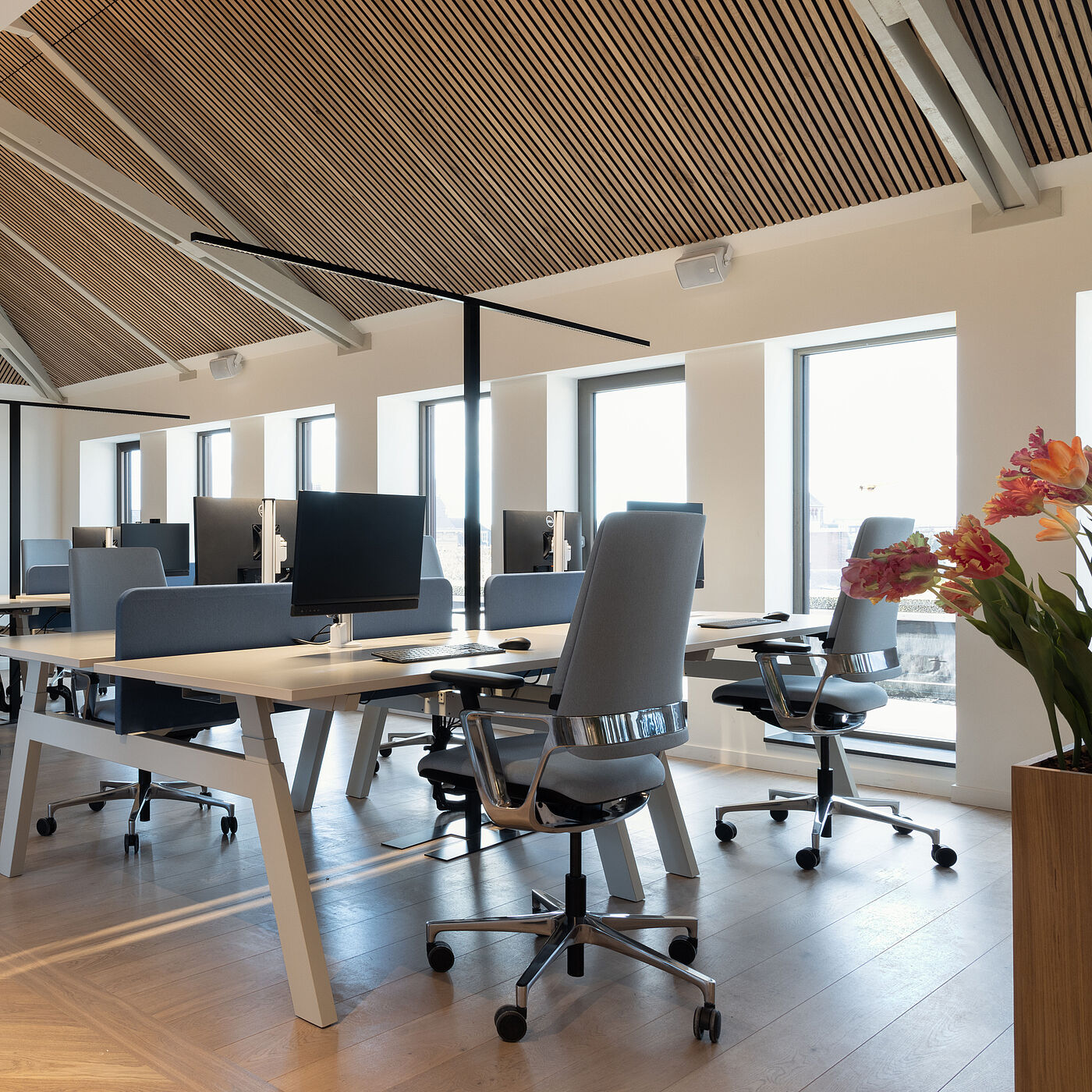 Our high-quality Mera Diamond and Connex2 chairs fit seamlessly into the sophisticated interior design concept and enhance the entire working environment with their quality and durability. These chairs perfectly represent the interplay of form, function and sustainable design that L - Founders of Loyalty and Voss Architecture pursued at every step of the project.