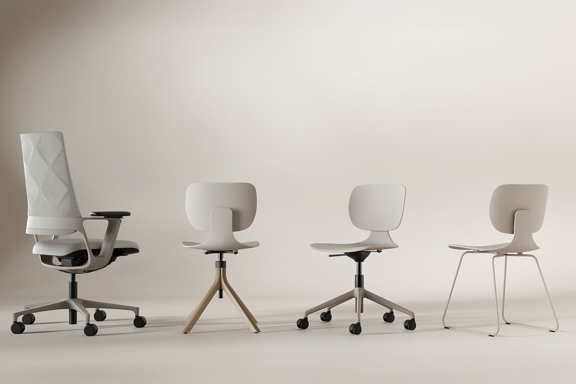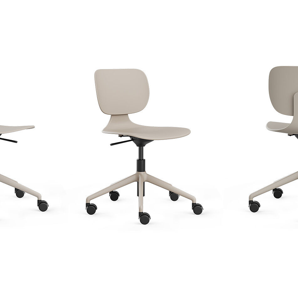 Die exklusive Variante des CoMeet Work heißt CoMeet Work | Edition Simply Taupe. Seit Januar 2026 ergänzt nun ein taupefarbenes Fußkreuz das Design.
